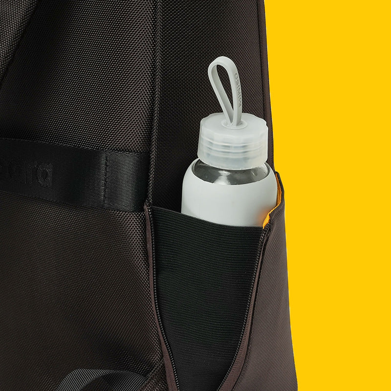 - Zippered water bottle pocket at the side.